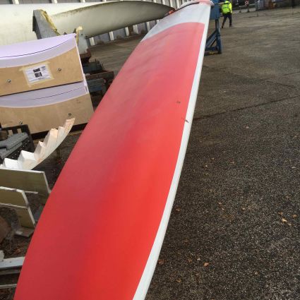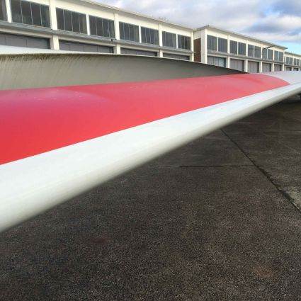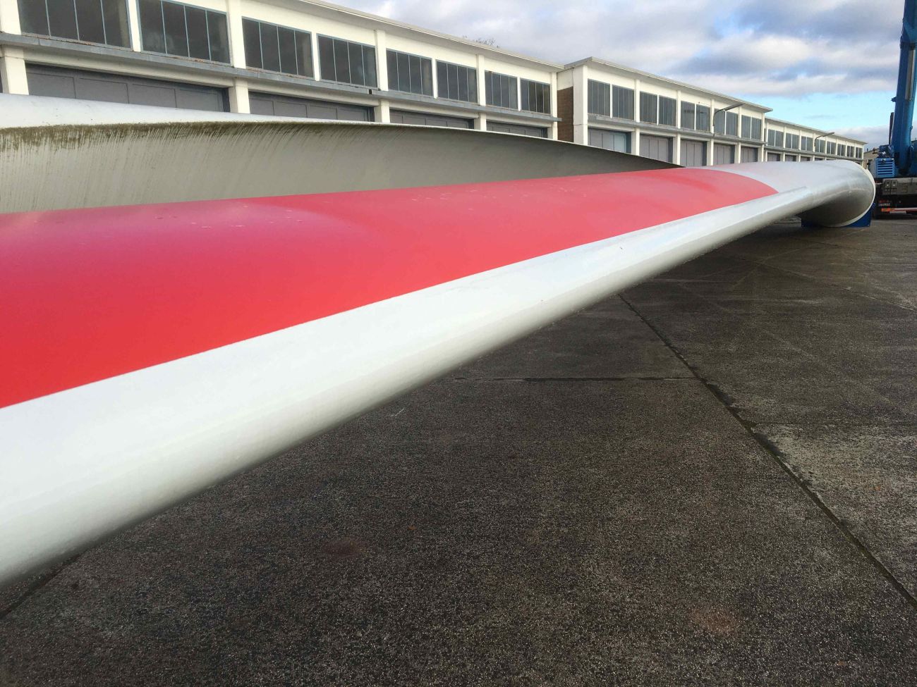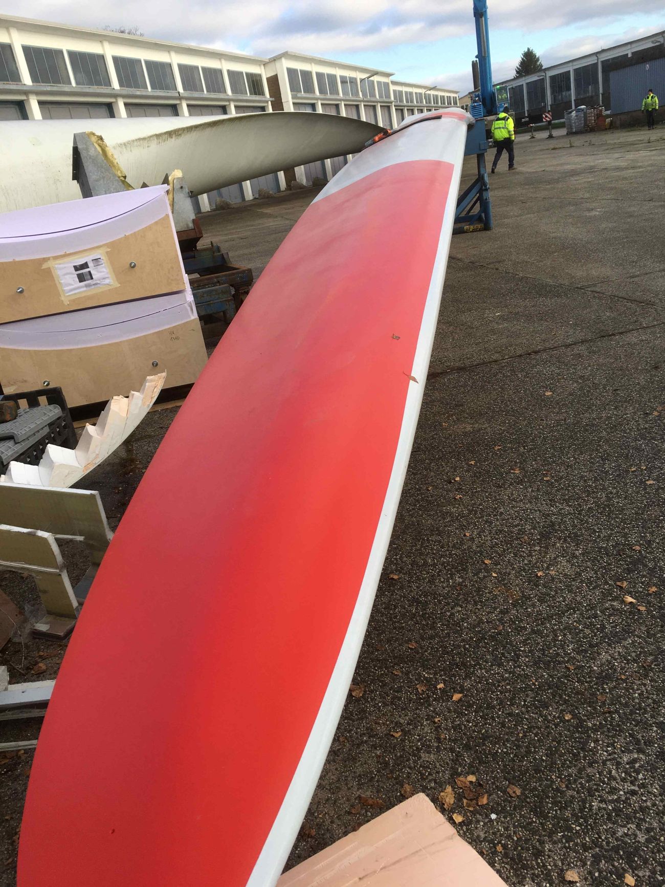 Vendemos una pala de rotor RE50.8. La pala del rotor se dañó en el borde de ataque durante el transporte al lugar de instalación. El daño en el borde de ataque se ha reparado de acuerdo con los últimos estándares de reparación de Senvion. Después de la reparación, la pala se almacenó y nunca se usó en una turbina.
