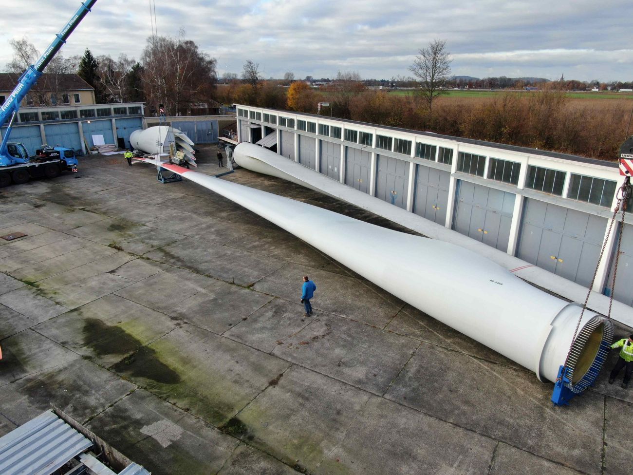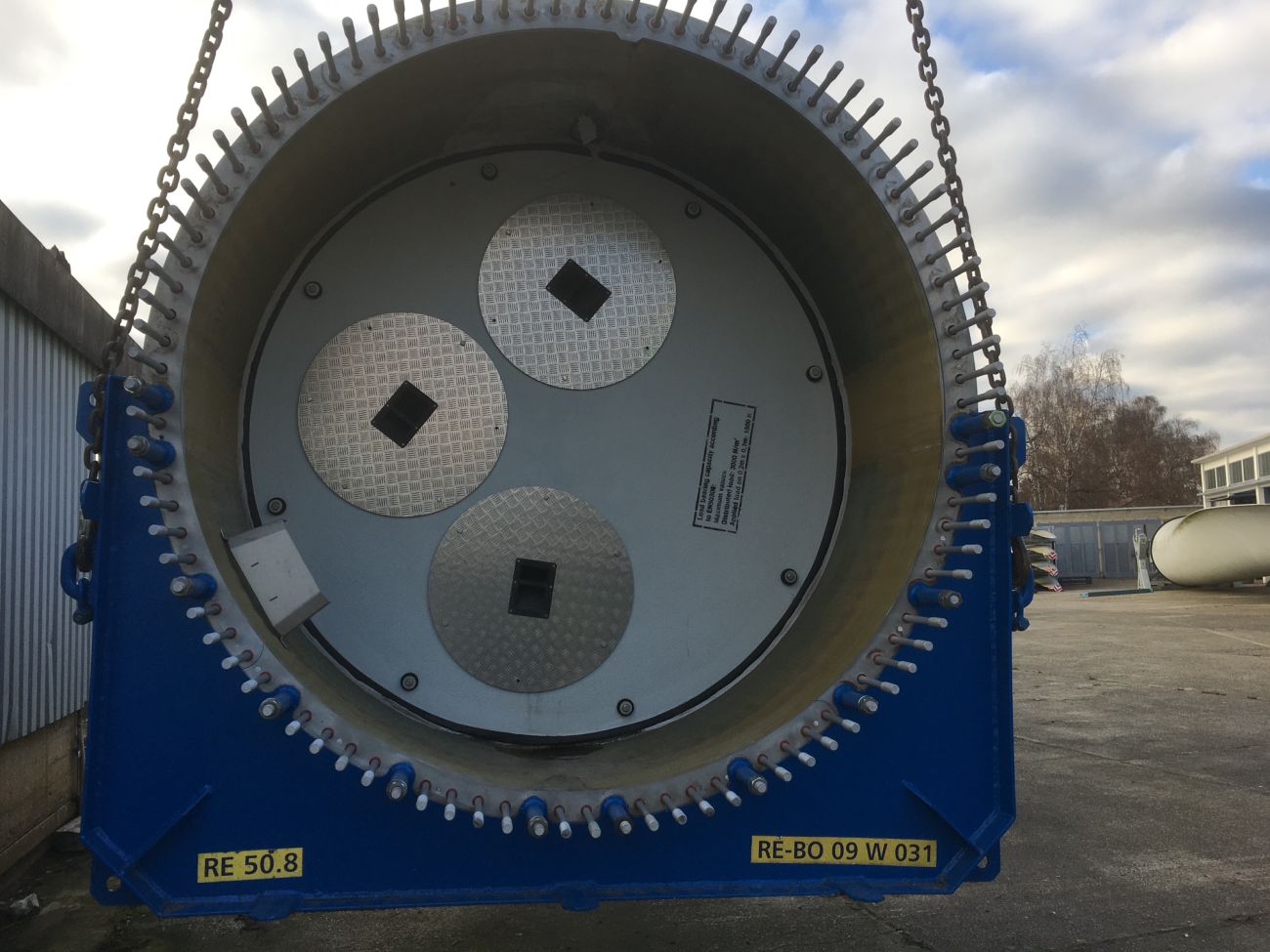 La pala del rotor está equipada con bastidores de brida y transporte/cojinetes de punta.