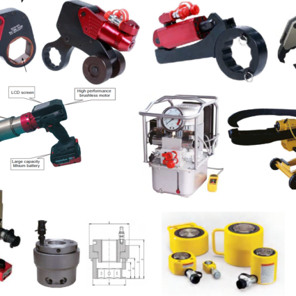 Llave dinamométrica hidráulica, pistola de torse eléctrica, unidad de potencia hidráulica, bomba de tensión hidráulica, cabeza de tensión hidráulica, y toda la gama de herramientas hidráulicas y eléctricas para el mantenimiento e instalación de equipos eólicos